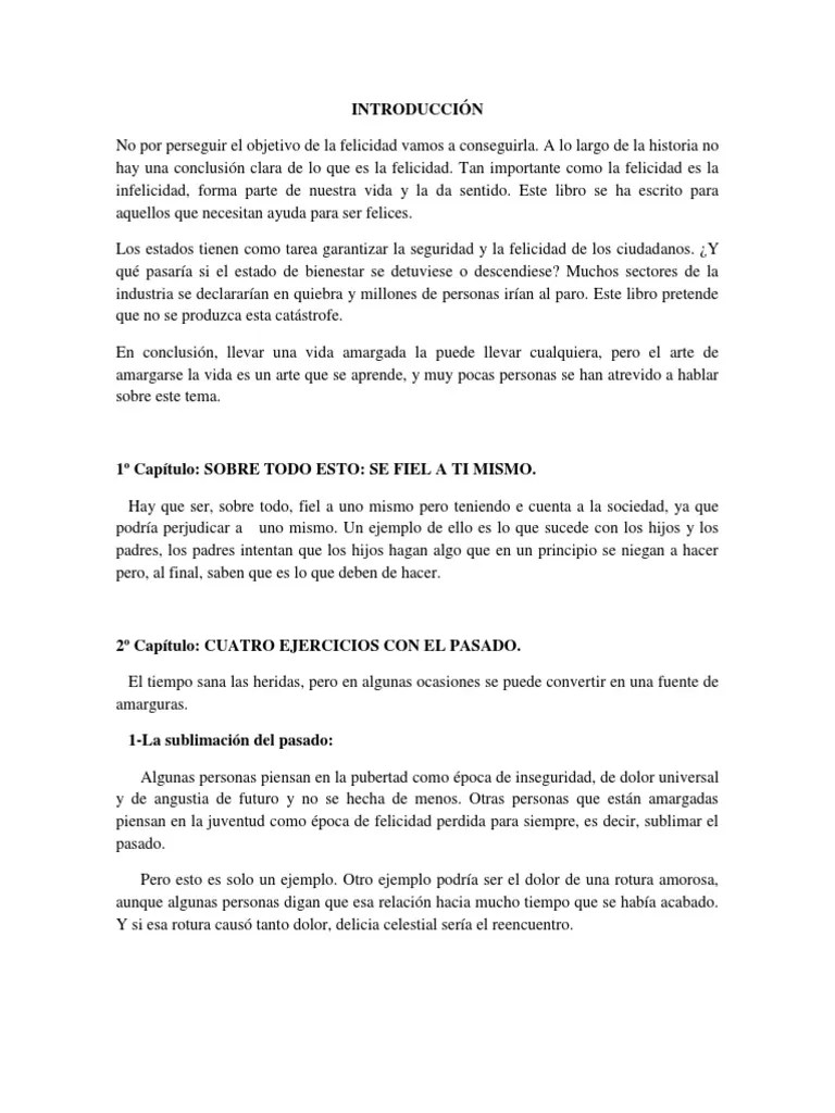 El objetivo de este libro es ayudar a los lectores a aprender a ser fuertes emocionalmente y aprender a ser feliz. 12/08/2015 · resumen del libro el arte de no amargarse la vida como indica el autor, la vida no es fácil, y está llena de retos y acontecimientos adversos que necesitan ser resueltos. Ya que cuando estamos tristes o deprimidos nuestras actitudes no serán buenas y estas serán afectadas por la mala toma de decisiones. A esta obra se le podría llamar manual para aprender el arte de no amargarse la vida.. 1 cambiar es posible en este primer capítulo del libro nos enseña la manera en que uno puede transformarse y que el cambio si es posible, no importa la edad que uno tenga siempre, cuando le pongas ganas de voluntad una persona puede hacerlo.